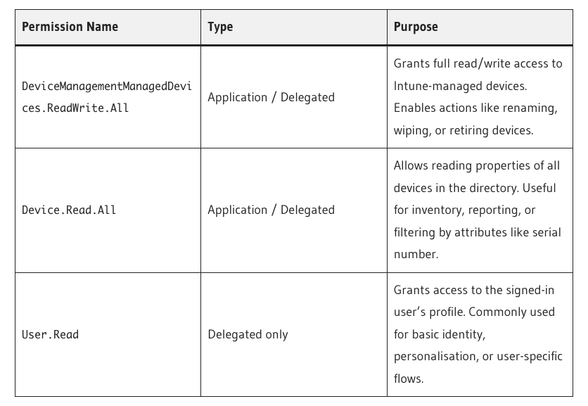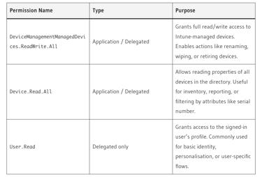To get started you will first require an Azure Application Registration but the good news is all you need are permissions for: