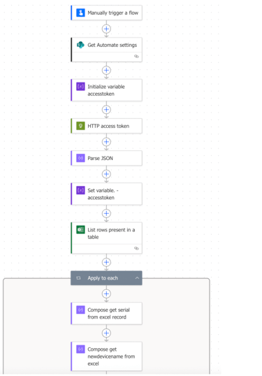 For every record added to the table in your excel document Power Automate will attempt to match the device in Intune. Please note I haven’t added error checking here so if the device is not found the flow will error. It’s worth making sure you have the correct serial numbers first.