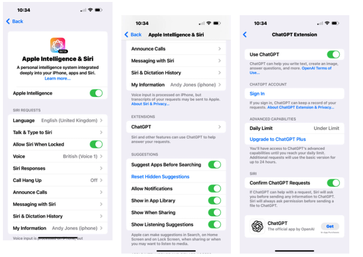 Apple announced the integration of ChatGPT with Apple Intelligence in the iOS 18.1 (iPhone) update. This allowed the new update Siri to draw on ChatGPT for those more complex queries. This was enhanced further to include expanded ChatGPT features in iOS18.2 such as integration with ‘Writing tools‘ and ‘Visual Intelligence‘. A key factor here is that it allows users to be in control through explicit user consent for ChatGPT options.