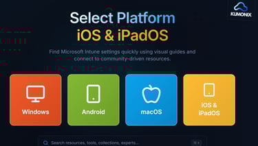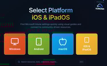 Kumonix Partner with IntuneQLinks to help provide Industry content for learning Microsoft Intune. This is your your go-to resource for Intune settings, documentation and community-driven content, providing quick access to essential information through a user-friendly and visual interface.