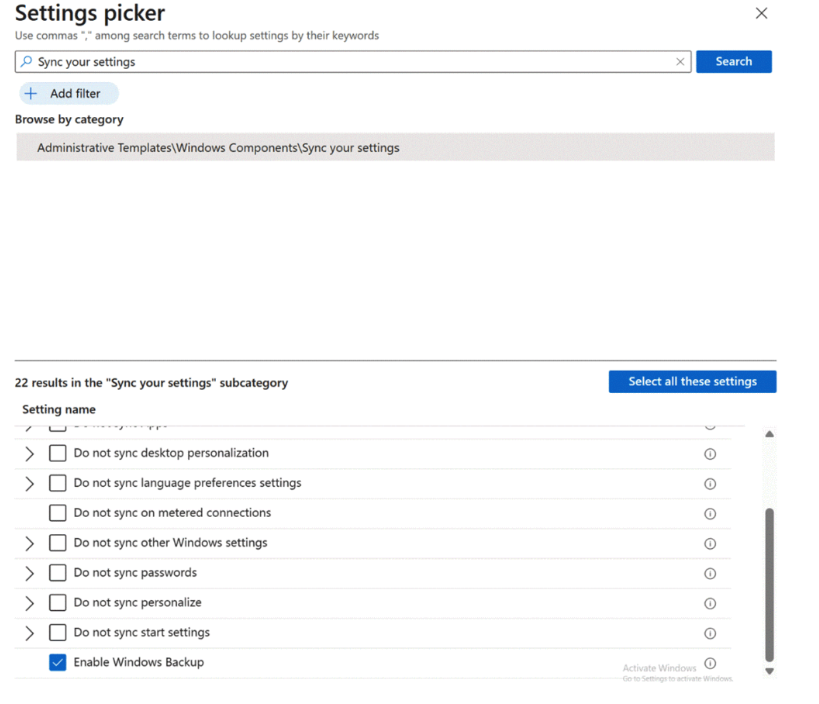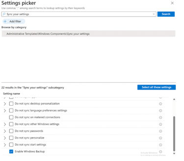 OMA-URI – ./Device/Vendor/MSFT/Policy/Config/SettingsSync/EnableWindowsBackup