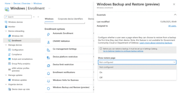 Go to Devices > Enrollment > Windows Backup and Restore